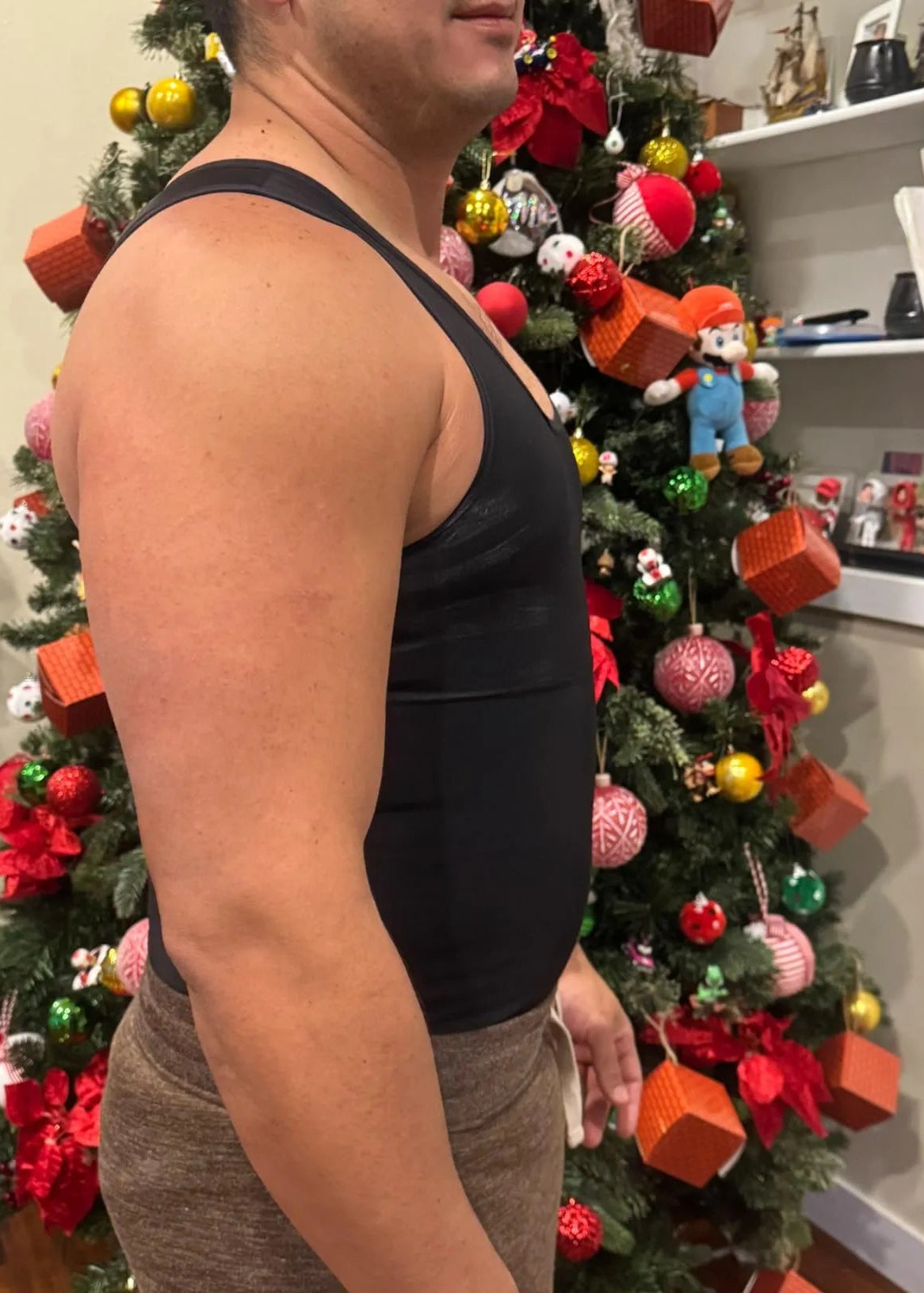 Es una camiseta de compresión diseñada para hombres que desean prevenir y reducir la ginecomastia, mantener una postura correcta y sentirse más seguros. Ofrece compresión moderada en pecho y abdomen, además de soporte dorsal.
